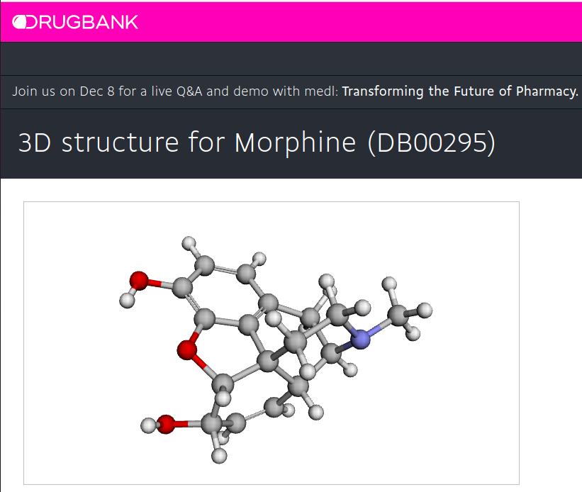 Go to DrugBank, type "morphine" and find the 3-D coordinate.