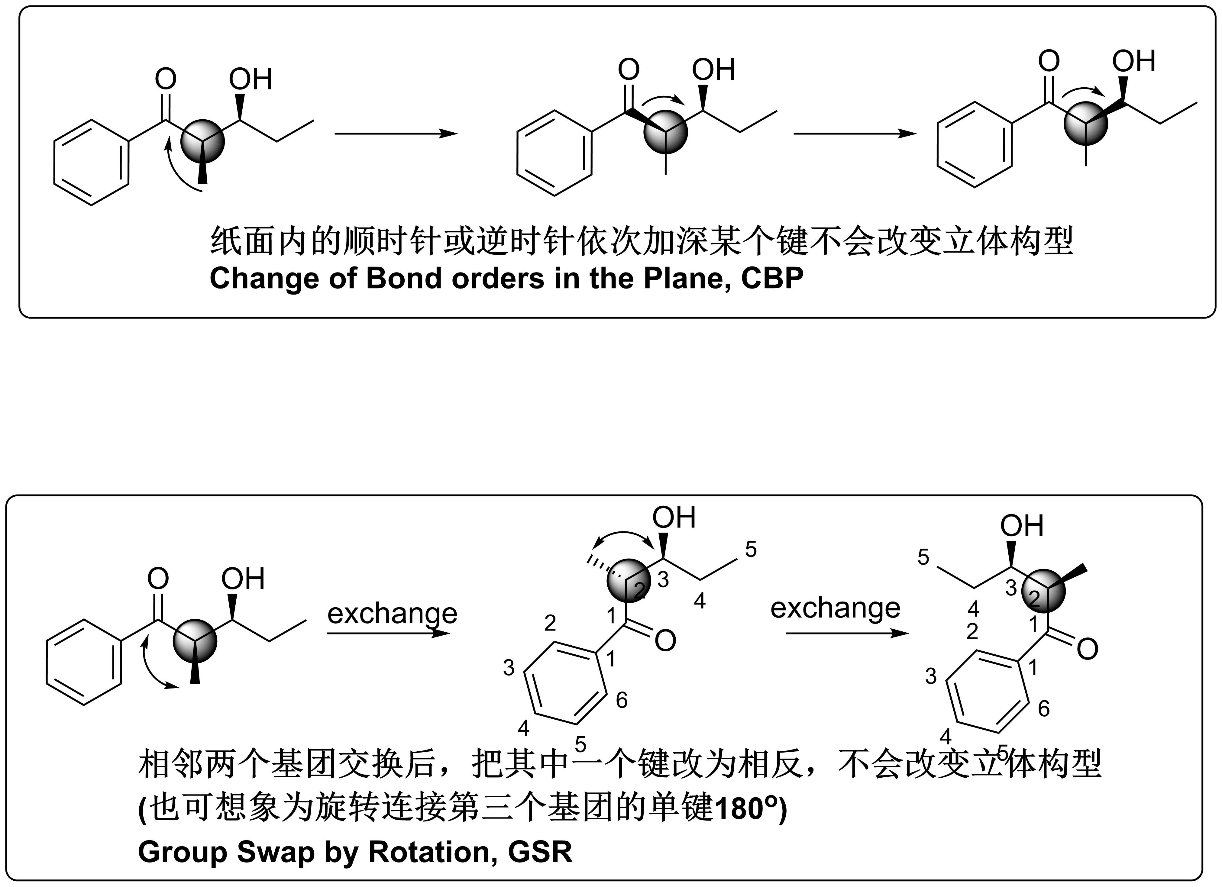 Though the chiral center of carbon 2 in the last image keeps all the time, 3 positions changed actually, so you should be careful if two chiral centers are adjacent when using CBP and GSR.