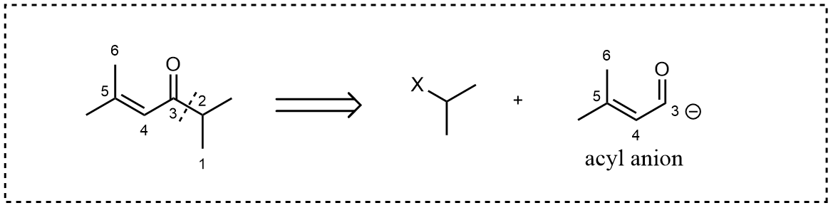 We need a potential reaction 3 as shown below.One can assume that the right-hand side subunit being an alkyl halogen, as an electrophile, while the left-hand side an acyl anion. The question is how could we obtain such a species in practice, given the acyl group’s positively charged nature.